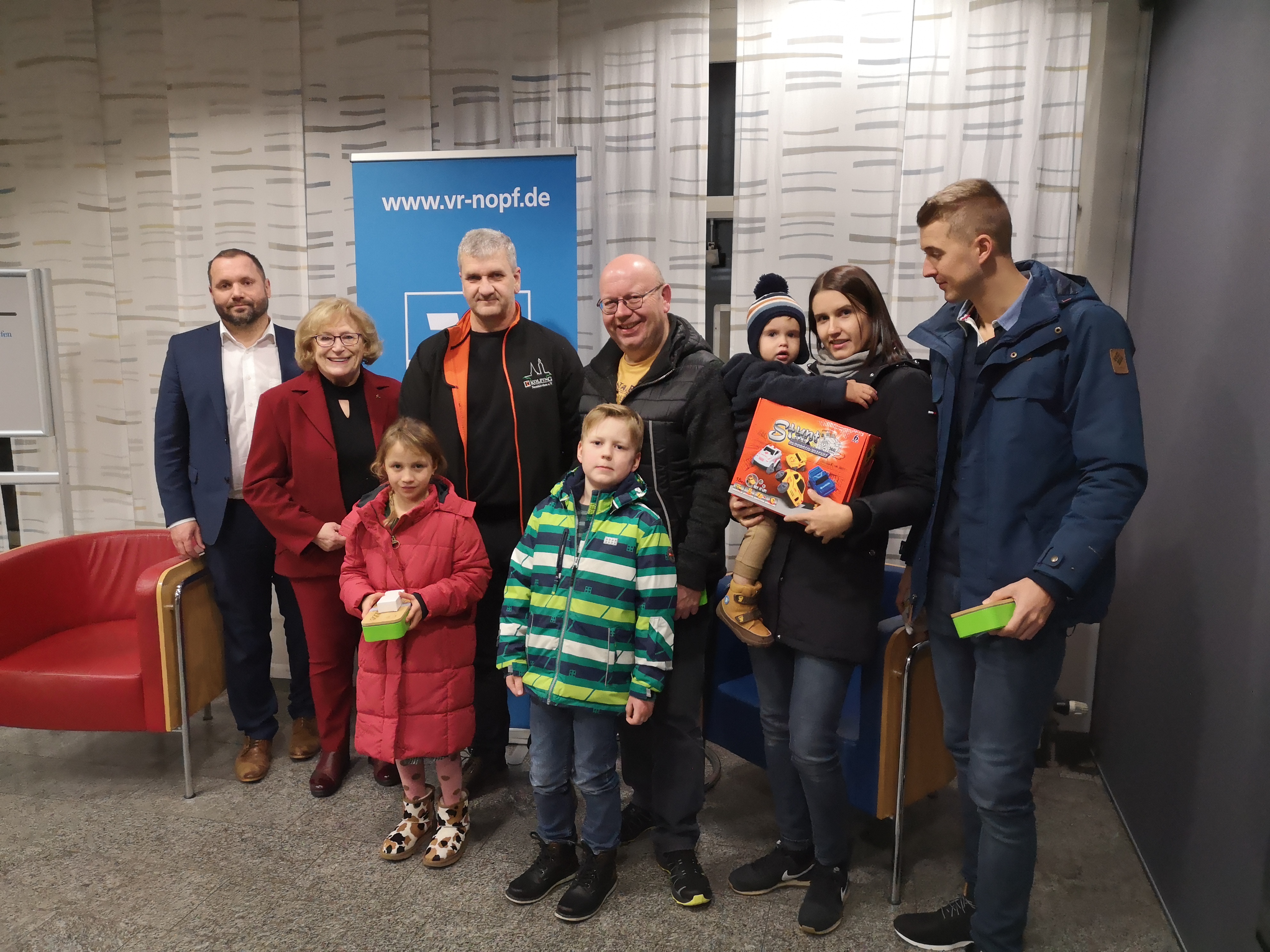 Glückliche Gewinner bei der Preisverleihung in der Geschäftsstelle der Volksbank Raiffeisenbank Nordoberpfalz eG in Mantel