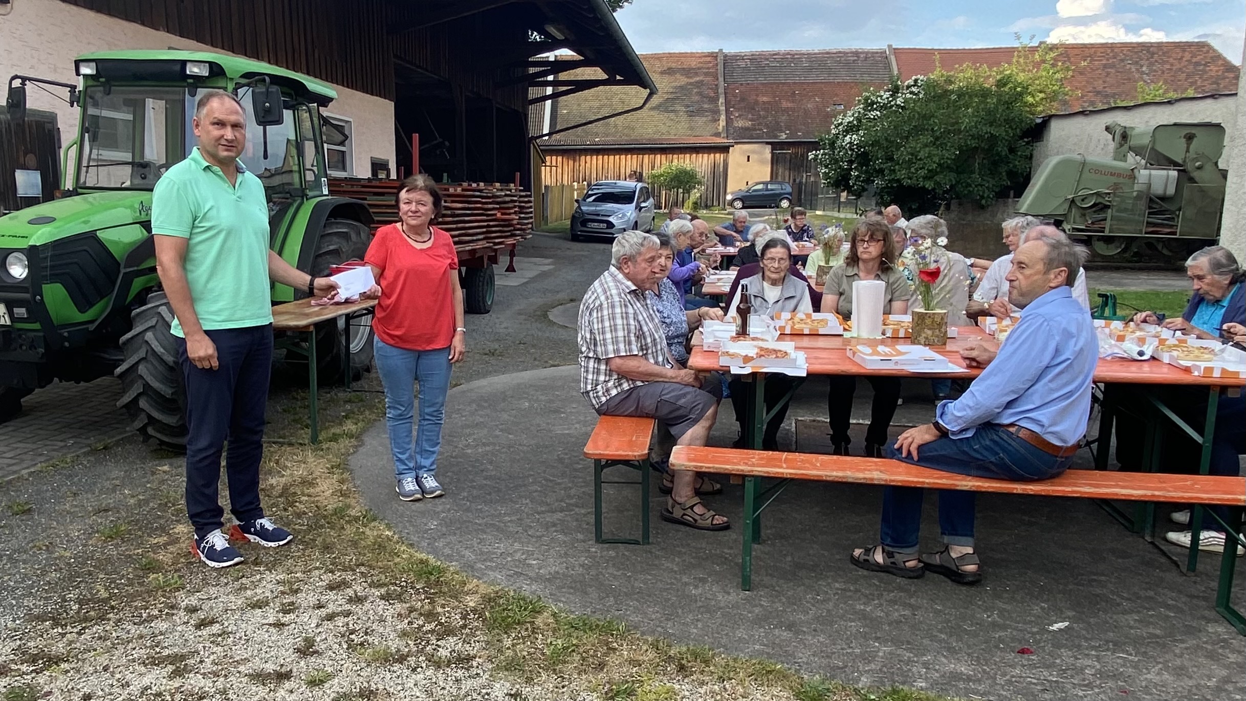Ingrid König aus Rupprechtsreuth hat kürzlich die Landfrauen mit ihren Männern zum Pizza-Essen eingeladen. Im Hof von Rosa und Walter Janner wurden Tische mit reichlich Abstand aufgestellt. Die Corona-Regeln wurden eingehalten. Ingrid König hat im Vorfeld von allen die Bestellung telefonisch aufgenommen und bei der TSG Turnhallengaststätte bestellt. Um 19:30 Uhr wurden die Pizzen geliefert.