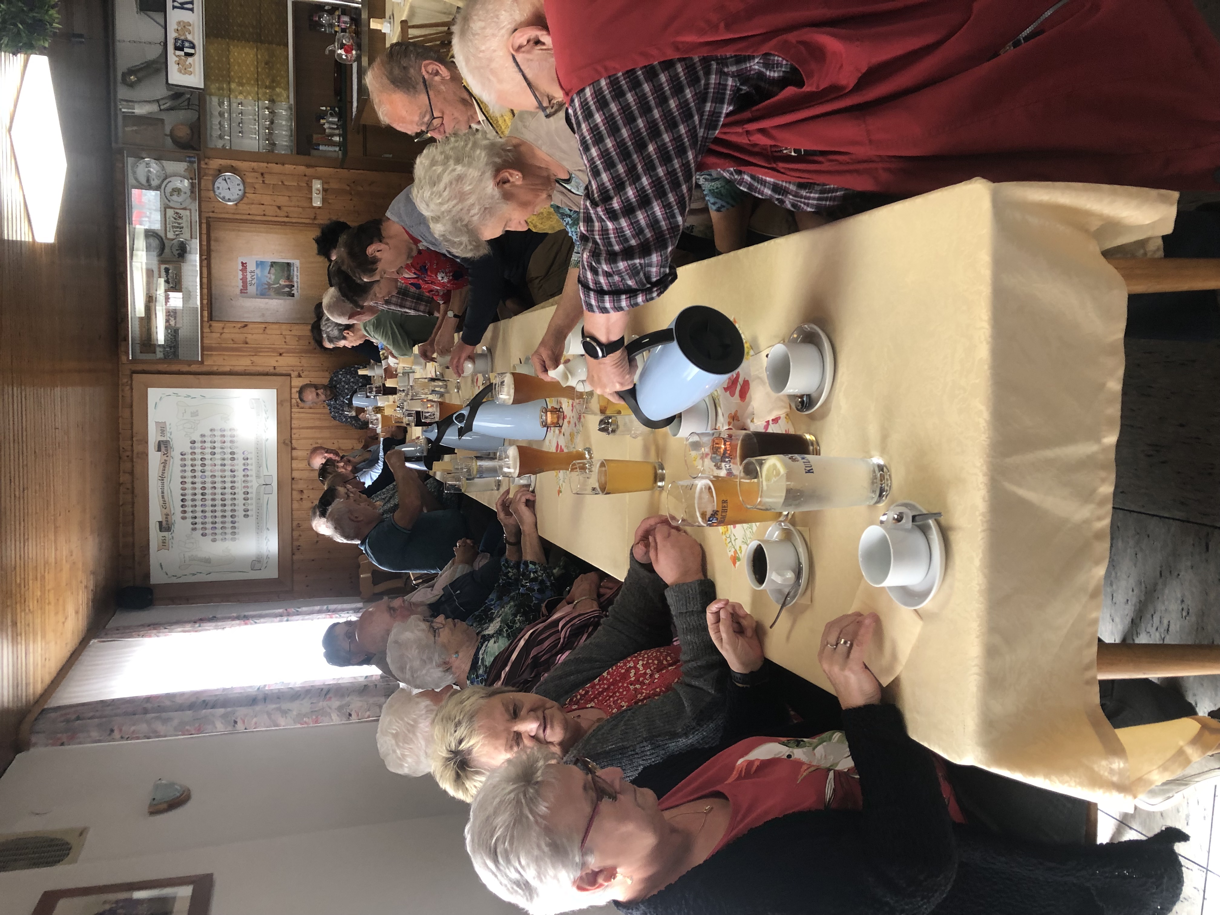 Am Pfingstsamstag hatte der VdK Ortsverband Mantel unter Leitung von Carola Brust ins Gasthaus Hauptmann zur gemeinsamen Muttertags- und Vatertagsfeier eingeladen. Carola Brust begrüßte die Mitglieder und wünschte allen einen gemütlichen Nachmittag. Sie bedankte sich bei den Kuchen- und Tortenbäckerinnen, das Tortenbüfett ließ keine Wünsche offen. Käsesahnetorte, Schwarzwälder Kirschtorte, Erdbeerkuchen, Buttercremetorte und noch so einige Spezialitäten warteten auf Abnehmer zum Kaffee. Jeder Gast konnte locker drei Stück Torte oder mehr verzehren so viel war geboten. Doris Borchardt las eine Geschichte vor, wo ein kleiner Junge seiner Mutter mit Vergissmeinnicht Blümchen eine besondere Freude macht. Carola Brust beschenkte mit ihren Vorstandskollegen dann die Damen mit Blumenstöcken und die Herren bekamen Pralinen. Kaffee und Kuchen und ein Getränk waren für die Mitglieder frei. Die nächste Aktion des VdK Mantel ist der Aktionstag beim Seniorenbewegungspark am Ossangerweg am Sonntag, 16. Juni ab 14 Uhr.