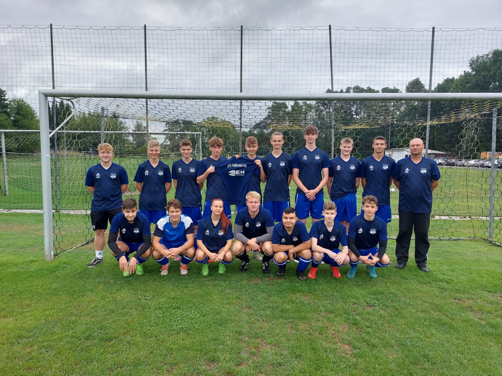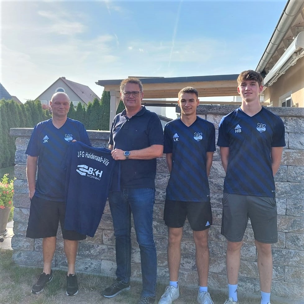 Bei der Übergabe der neuen Trainingstrikots herrschte große Freude bei den Spielern der A-Jugendmannschaft der JFG Haidenaab-Vils. Das Bauunternehmen BKH Wohnbau GmbH & Co. KG aus Luhe-Wildenau, vertreten durch Geschäftsführer Stefan Hader, sponsorte die Trikots an den Gruppen-Sieger der letzten Saison. Auf dem Bild zu sehen ist auch Jörg Kasten, Trainer der A-Mannschaft und Polier bei BKH. Die Mannschaft freut sich auf die neue Saison und ist bereit für neue Wettkämpfe!