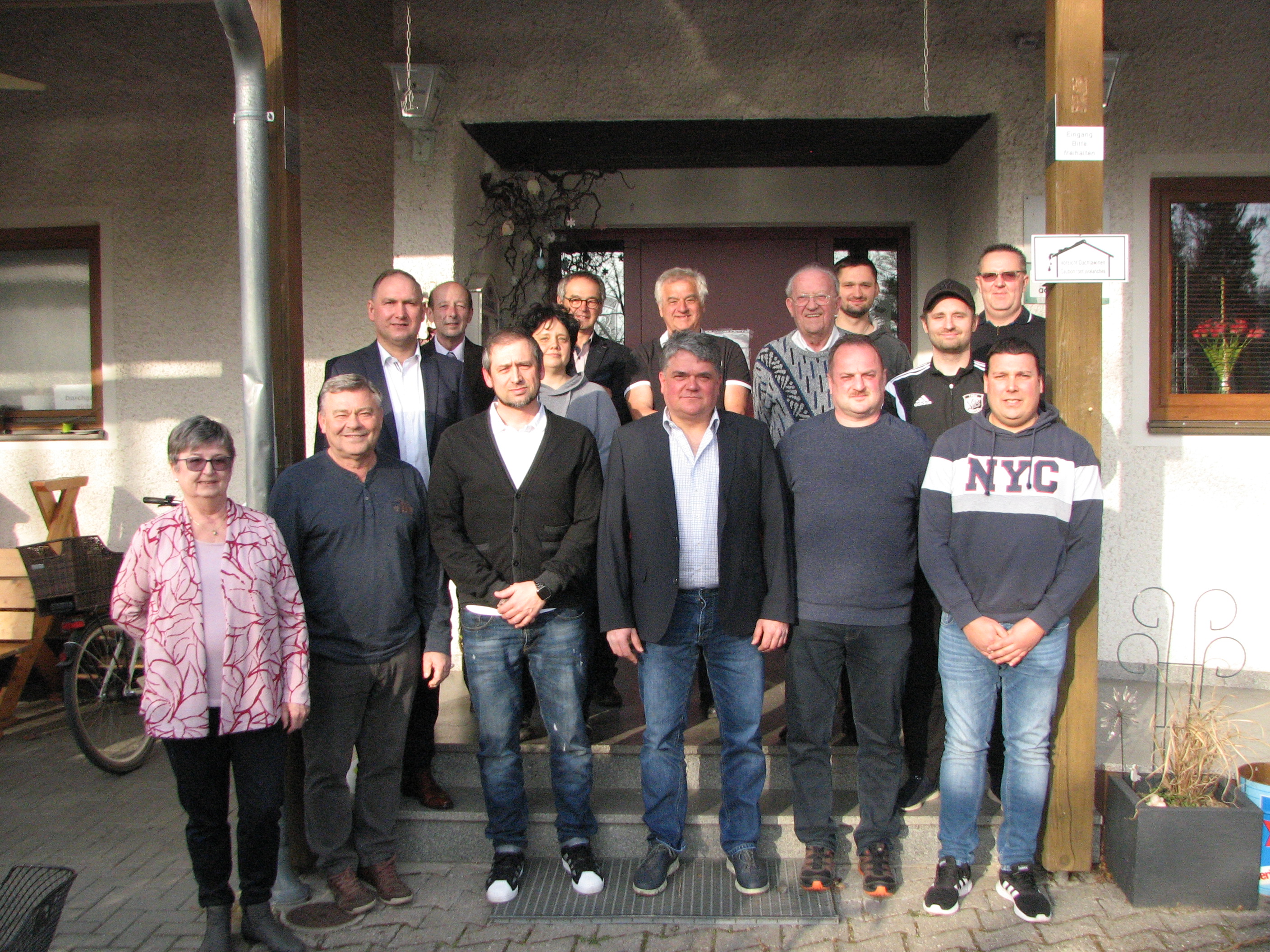 Bild „JHV VfB 2022 - Vorstandschaft (1)“: Mit neu gewählter Vorstandschaft geht der VfB Mantel die nächsten zwei Jahre an. Bgm. Kammerer (mittlere Reihe links) beglückwünschte den neuen Vorsitzenden Stefan Neumann (vordere Reihe Mitte), seinen Vertreter Holger Meyer (vordere Reihe 3. v. l.) und die weiteren Vorstandsmitglieder zu ihrer Wahl.