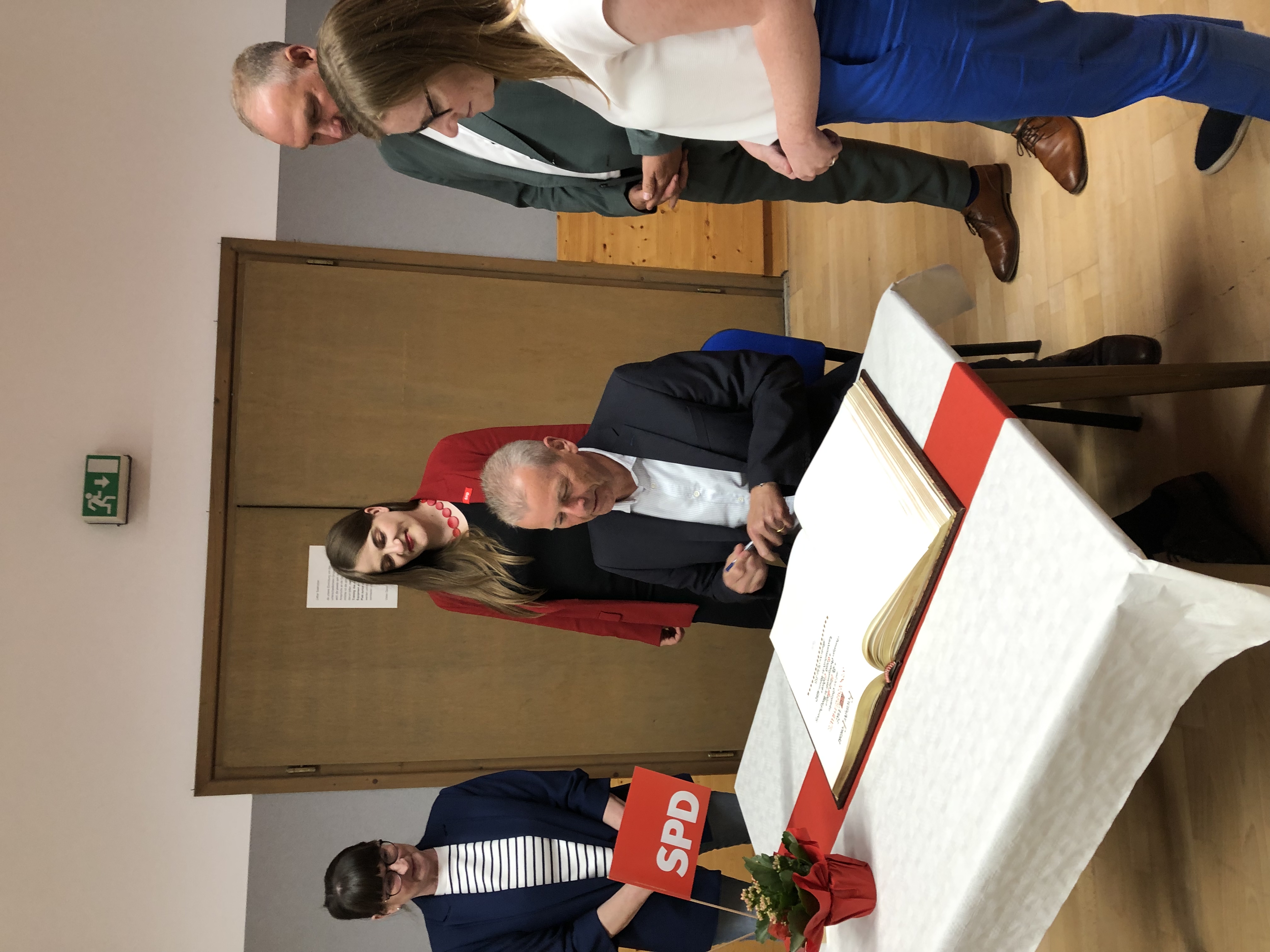 Über ein volles Haus freute sich Vorsitzende Andrea Bertelshofer bei der 100-Jahr Feier der Manteler Sozialdemokraten. Sie begrüßte zahlreiche Ehrengäste und benachbarte Ortsvereine und auch Manteler Vereinsvertreter. Der ganze Abend stand im Zeichen der Demokratie. Alle Redner beschworen, die Demokratie zu stützen und zu erhalten, egal bei welcher Partei man ist. Konzentriert verfolgten dann die Gäste den Festvortrag von Dr. Ulrich Maly, ehemaliger Oberbürgermeister der Stadt Nürnberg, der sich humorvoll als „Clubberer“ bekannte. „Aus der SPD tritt man nicht aus, man stirbt“, gelte auch heute noch, so Maly. Die Rechtspopulisten sind weltweit auf dem Vormarsch, die politische Mitte schwindet. In den 60iger und 70iger Jahren waren Willi Brandt und Helmut Schmidt Ikonen, ihre Fotos standen bei den Familien zu Hause. Maly ist der Meinung, dass die stärkere Wahlbeteiligung durch die frühere Nichtwählerschaft kommt. Beifall erhielt er für die Bemerkung, dass die Abschaffung der Vermögenssteuer ein Fehler war. Nur ein Prozent der Deutschen bezahlte Vermögenssteuer. „Wir werden viele Jahre mit der AfD leben müssen und uns mit ihr auseinandersetzen“. Wir müssen aus der Spirale der Angst herauskommen. „Menschliche Arbeit wird zu hoch besteuert“, so der Redner. „Viele Dinge treiben uns an, wir sind eine Friedenspartei. Waffen schaffen selten Frieden. Wir sind die Garanten der Demokratie und stolz darauf. Wir stehen fest auf den Beinen der Sozialdemokratie, beschwor Maly abschließend und erhielt für seine Rede langanhaltenden Beifall. Zuvor hatte MdL Nicole Bäumler auf die Gründungszeit der SPD zurückgeblickt, wo alles teurer wurde. „Wir müssen auch international zusammenhalten. „Schritt für Schritt müssen wir das Leben für die Menschen besser machen“. Bürgermeister Richard Kammerer bestätigte, dass aus den Reihen der SPD immer wichtige Impulse zum Wohle der Gesellschaft kommen. „Ihr seid eine Partei, welche die politische Mitte vertritt“, so der Manteler Rathauschef. Differenzen sind nicht unüberbrückbar. Kammerer überreichte zum Jubiläum eine Spende des Marktes Mantel und vom Vereinskartell. Parteihistoriker Karl Bayer bestätigte, dass sozialdemokratische Politik viel Mut voraussetzt. 1925 war ein Schicksalsjahr. Die Wahl Hindenburgs beschleunigte den Rechtsruck. Von 1967 bis 1978 hat die SPD den Bürgermeister in Mantel gestellt und damit Geschichte geschrieben. „Unsere Geschichte ist noch nicht zu Ende“, so Bayer. Ronja Endres, SPD Landesvorsitzende in Bayern bestätigte dass die SPD-Leute oft bis tief in die Nacht mit Herz und Engagement diskutieren. „Wir sind alle wahnsinnig schlecht gelaunt in Deutschland“. Nichts wird besser, wenn man nicht daran arbeitet, ihre Devise. „Demokratie ist komplizierter geworden“. Aber sie ist das beste System, das wir haben“. Die AfD findet viele Rechte wie zum Beispiel die Pressefreiheit nicht gut “Wir müssen rausgehen und Gespräche führen, war der Apell der Landesvorsitzenden. Zwischen den Rednern sorgte die Band Jara Milo mit Rockklassikern aus den 70iger Jahren für beste Stimmung. Abschließend bedankte sich Vorsitzende Andrea Bertelshofer noch bei „Festleiter“ Dr. Manfred Klier für die Organisation. Es gab noch Glückwünsche und Geschenk vom Ortsverein Etzenricht dessen Paten die Manteler sind. Die SPD-Mitglieder versorgten die Gäste flott mit Getränken und auf den Tischen stand pikantes Kleingebäck. Zur Feier des Tages trugen sich dann die Ehrengäste in das Goldene Buch des Marktes Mantel ein.